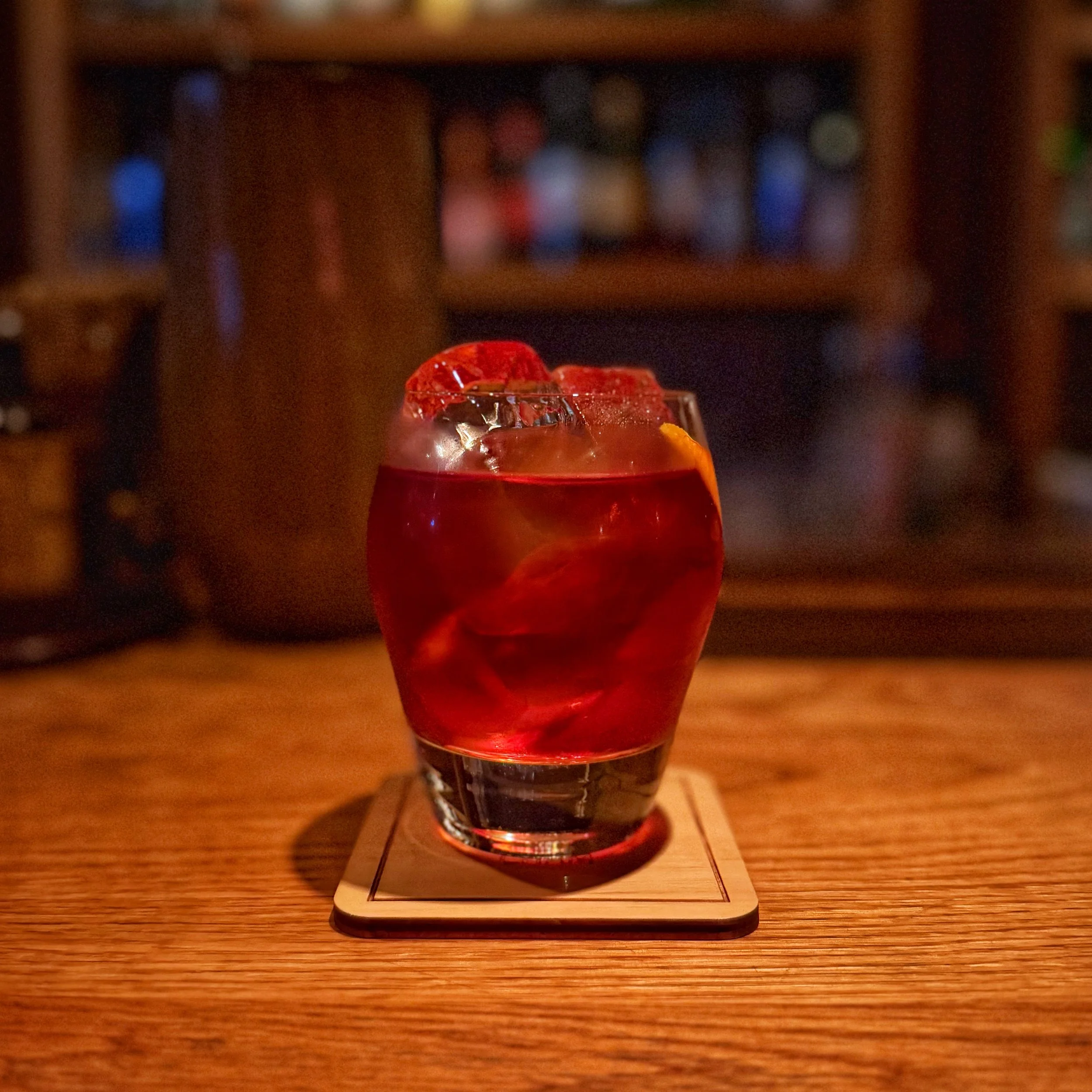 4. Jeju Island: 제주 네그로니 Jeju Negroni Solomon's Seal & Dried Mandarin Peel infused Gosorisul, Campari, Rosso Vermouth