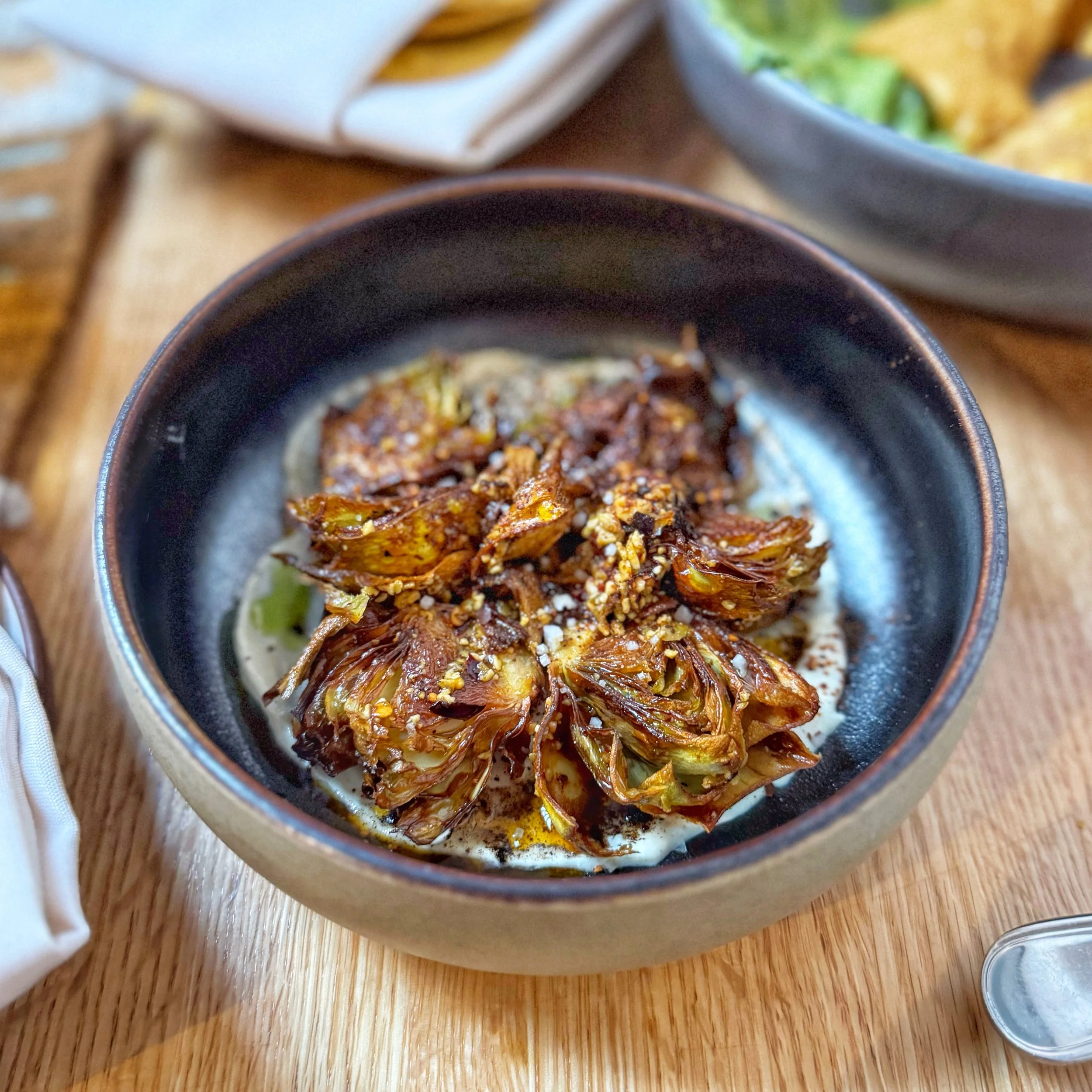 2. ARTICHOKE Charred habanero labneh, pepitas, chives