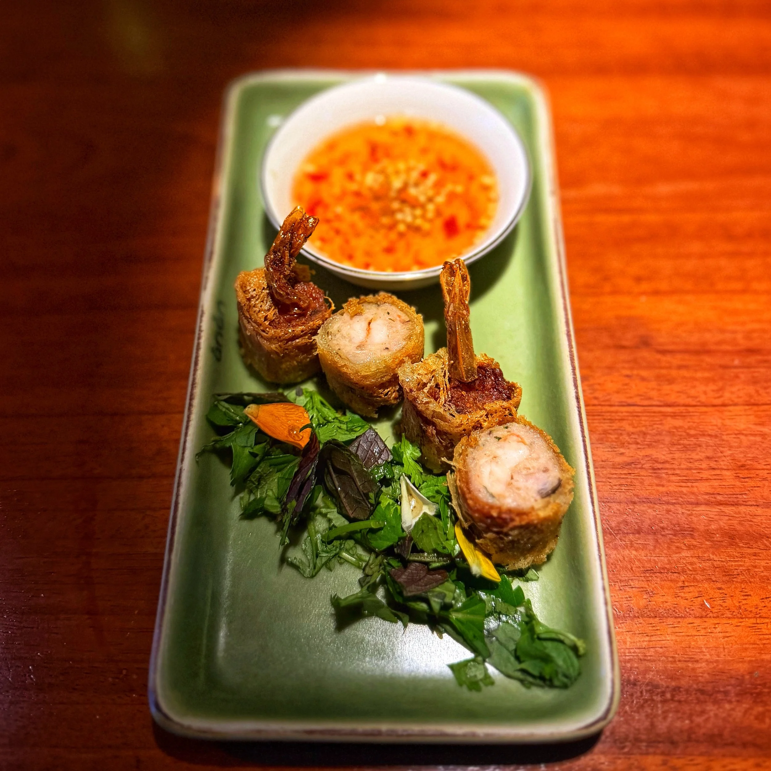 3. SEAFOOD SPRING ROLL Crispy spring roll with crab, shrimp & pork, fresh herbs, nước chấm sauce