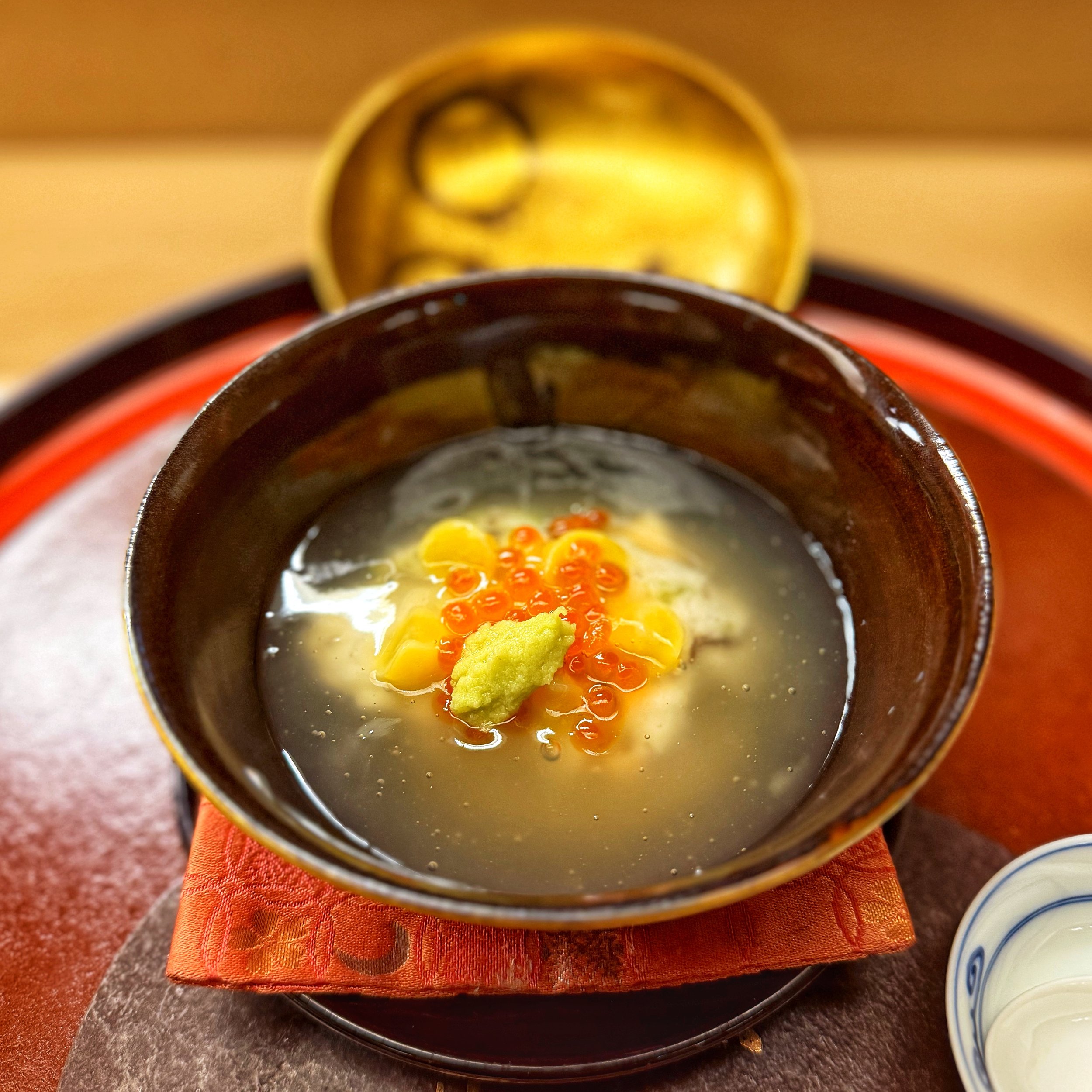 6. Futamono Red tilefish steamed with grated turnip, wood ear mushroom, lily bulb, mistuba herb, salmon roe, gingko nuts, wasabi