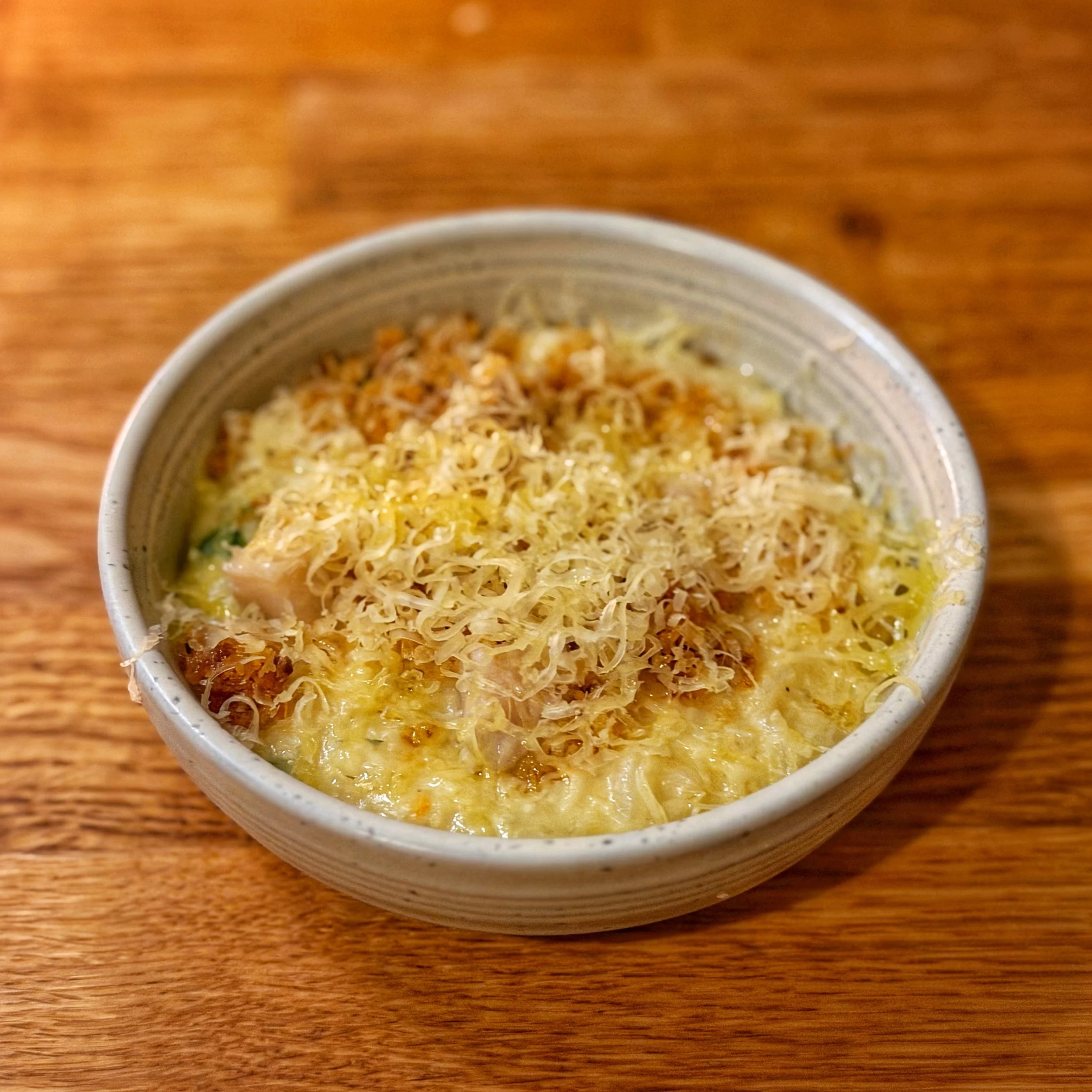 2. Smoked eel risotto with horseradish and Old Winchester cheese
