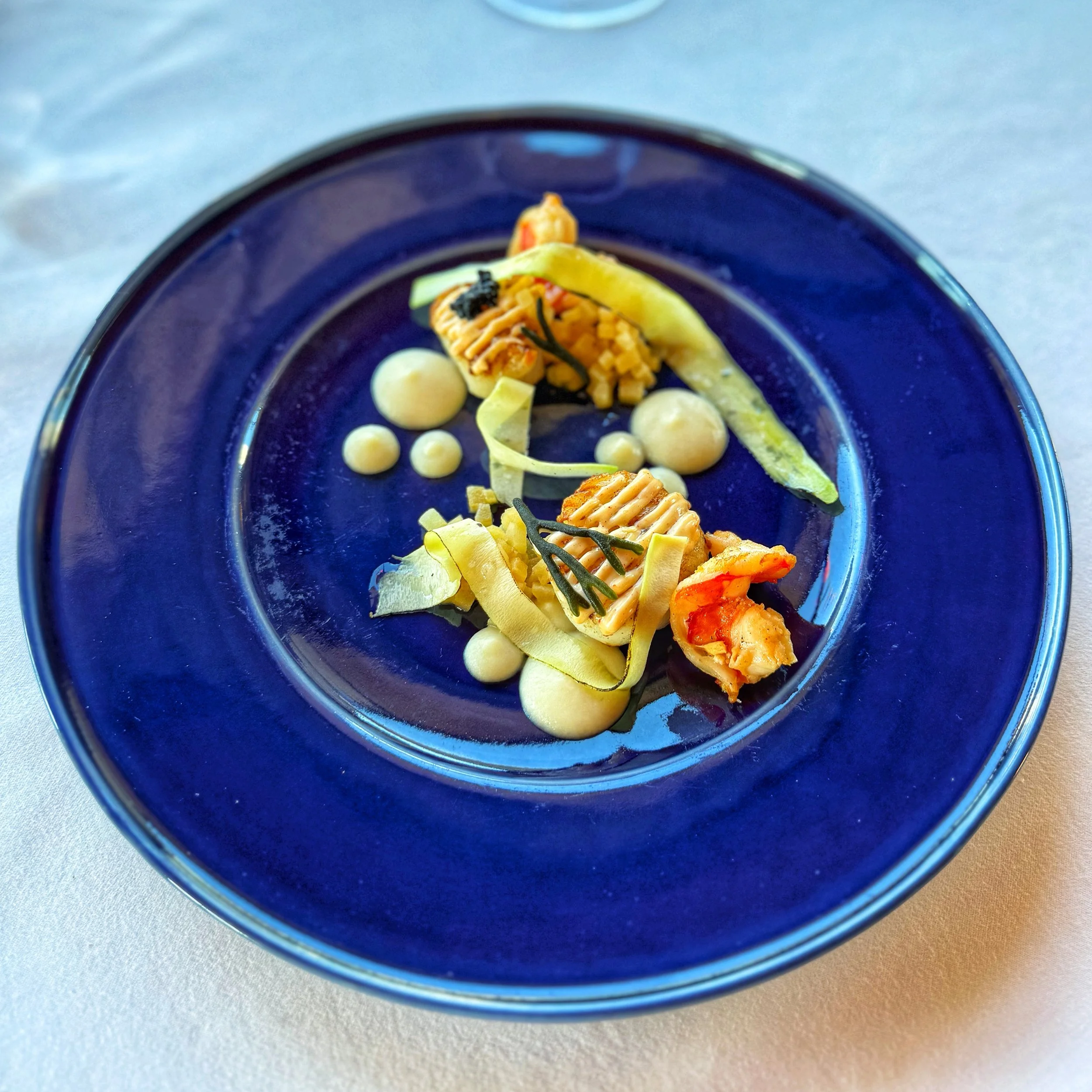 4. SCALLOP & PRAWN. Apple textures, codium, kimchi mayo, herring roe, charred zucchini shavings